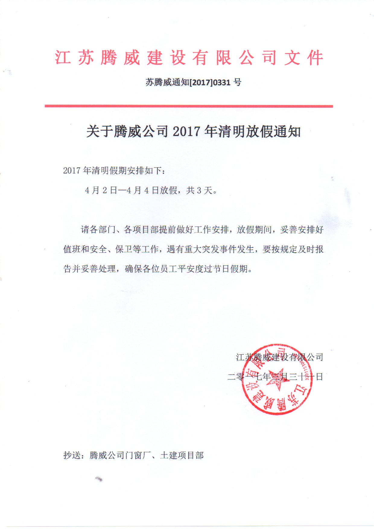 2017年清明放假通知