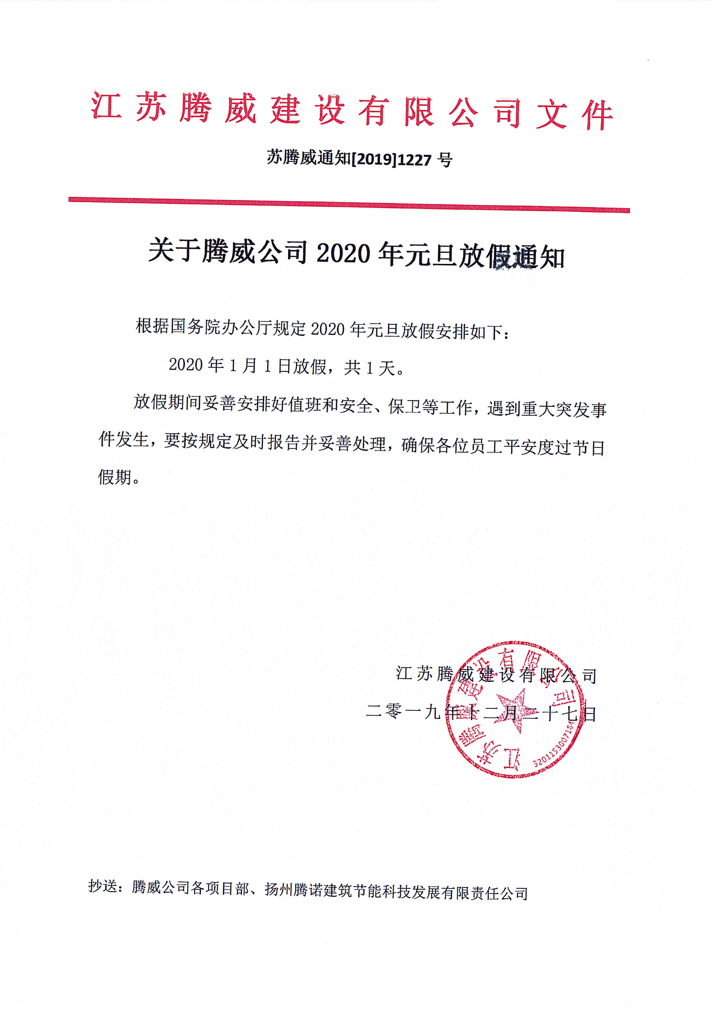 2020年元旦放假通知
