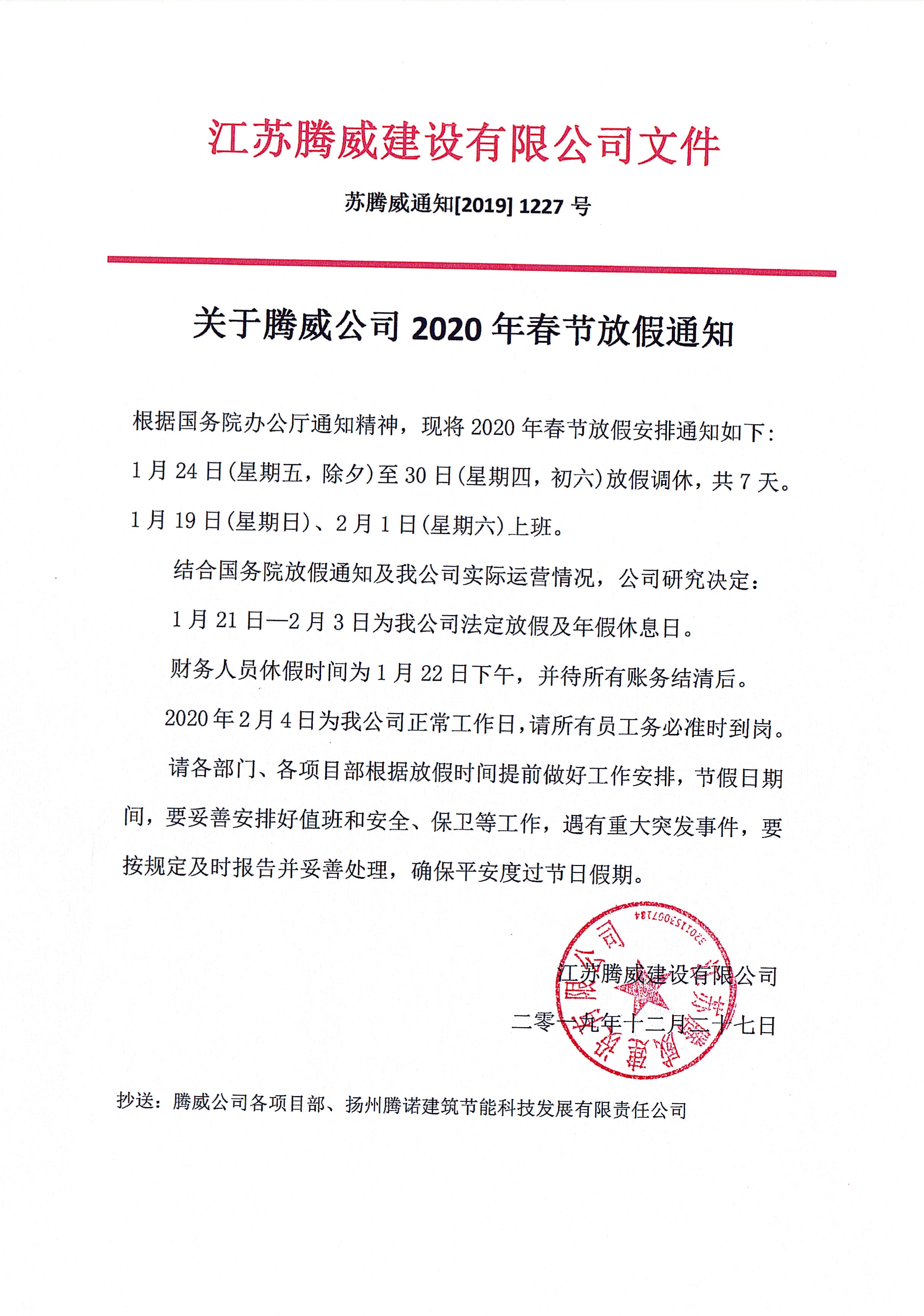 2020年春節(jié)放假通知