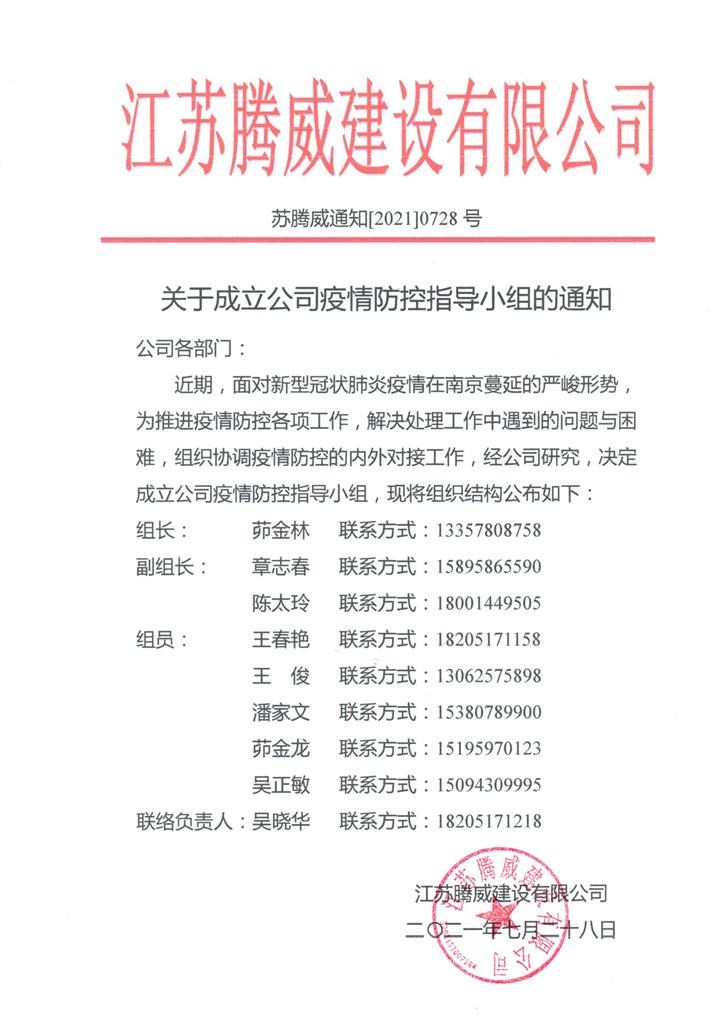 關于成立公司疫情防控指導小組的通知